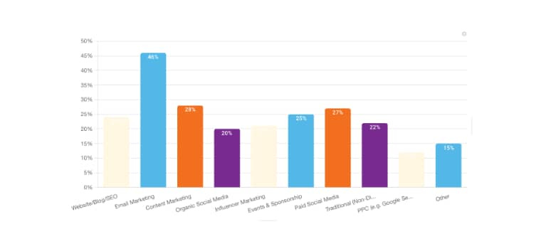 This is seen as the most cost-effective channel for all types of business and is used to acquire and nurture new leads and existing customers. The ability to more accurately measure ROI supports its dominance — which was also noted by Hubspot in their State of the Marketing Report 2024 (both email and paid social were tied at #2 as the most effective channels, resulting in the largest ROI).